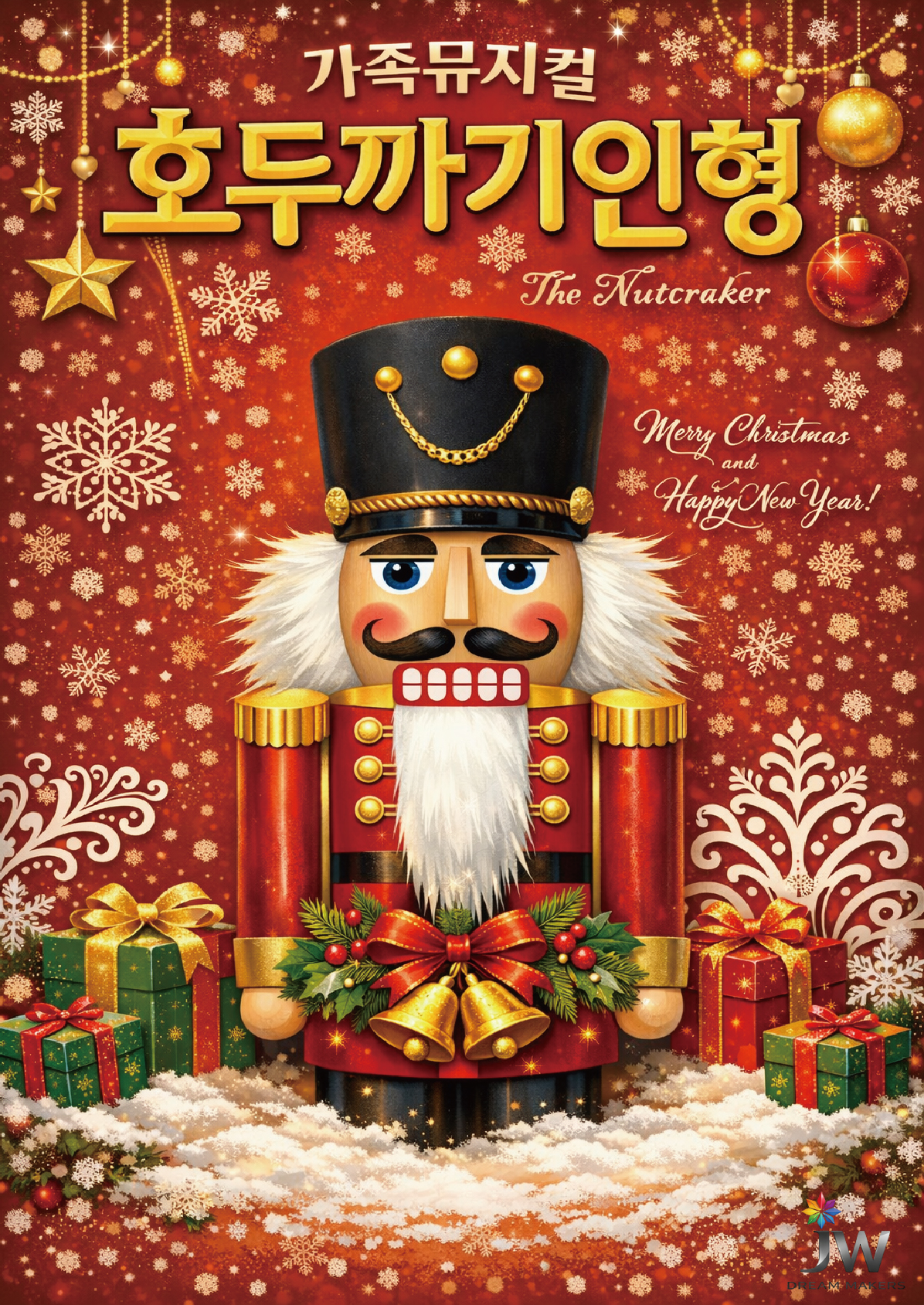 크리스마스를 대표하는 세계 명작 발레 〈호두까기인형〉을 중원씨어터만의 감성으로 재해석한 가족뮤지컬입니다. 장난감 병정 ‘호두까기인형’과 소녀 클라라가 환상적인 꿈의 세계로 떠나며 펼쳐지는 모험을 중심으로, 아이들에게는 상상력과 용기를, 어른들에게는 따뜻한 추억을 전하는 작품입니다. 이 공연은 원작의 클래식한 분위기를 유지하면서도 어린이 관객의 눈높이에 맞춘 이야기 구성과 친근한 음악, 유쾌한 캐릭터 표현을 더해 처음 공연장을 찾는 가족 관객도 부담 없이 즐길 수 있도록 제작되었습니다. 화려한 무대 전환과 크리스마스 시즌에 어울리는 무대미술, 배우들의 생동감 있는 연기와 노래가 어우러져 공연 내내 관객의 몰입을 이끌어냅니다. 중원씨어터의 〈호두까기인형〉은 단순한 관람형 공연이 아닌, 가족이 함께 웃고 공감하며 크리스마스의 의미를 나누는 시간으로 완성됩니다. 아이와 부모가 함께 보는 ‘첫 번째 명작 공연’으로, 연말 시즌 가족 관객을 위한 대표 레퍼토리입니다.